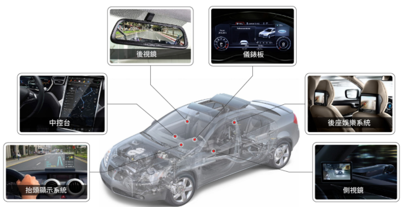 不論是在強烈陽光照射下或是在漆黑的夜晚,車內顯示螢幕對駕駛或是車內其他乘客來說,無非是要能看得清楚、看得舒適,且讓駕駛透過顯示螢幕的訊息清楚掌握路況,達到行車的安全。此外,同行的乘客也能透過車載娛樂系統看電影、玩遊戲等,讓整段旅程不再枯燥乏味。